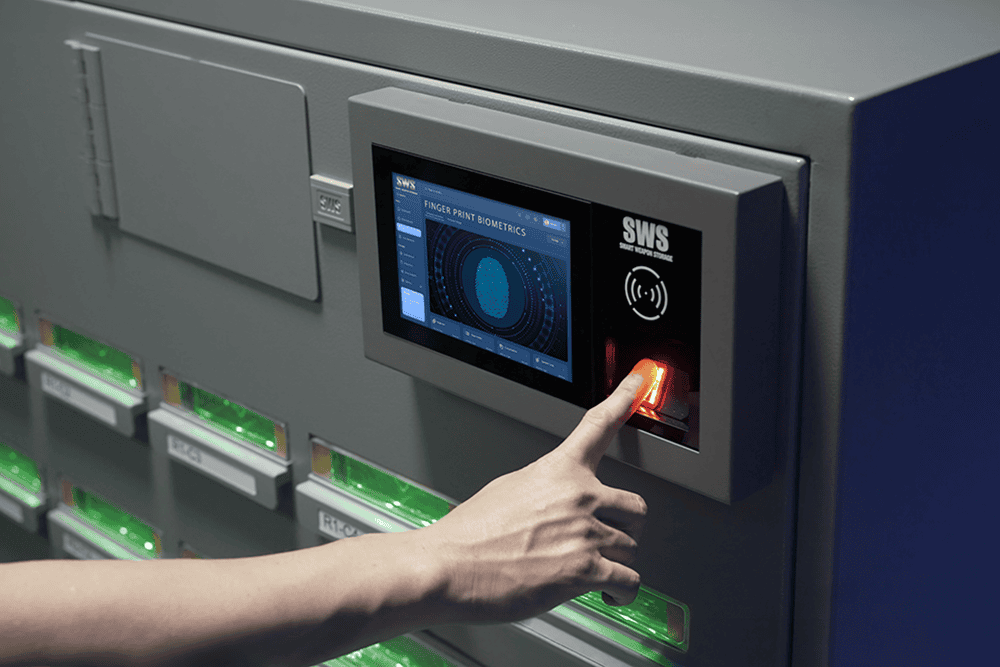 Sistemul integrează 30 de compartimente individuale cu oblon motorizat, panou de control cu ecran tactil de 7” și autentificare biometrică de înaltă precizie. Proiectat pentru responsabilitate, trasabilitate și pregătire operațională continuă.